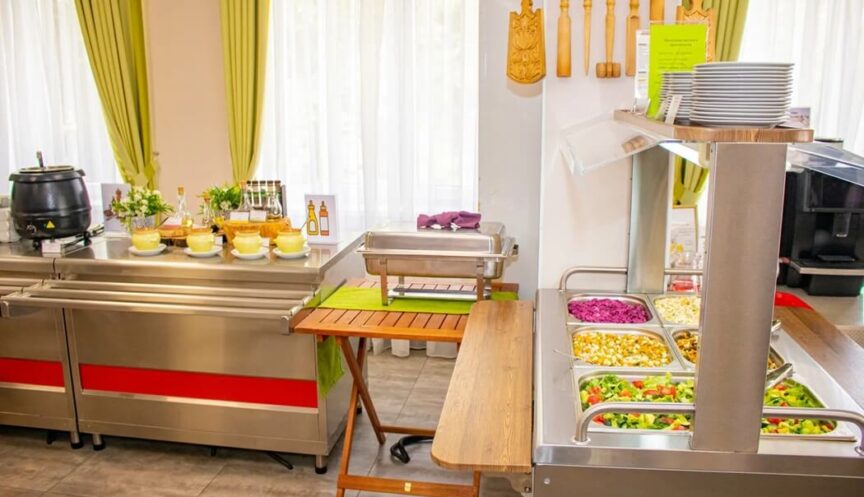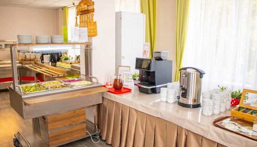 Гостям предлагаются два варианта питания: для краткосрочных заездов до трех суток — завтрак — включен в стоимость. При бронировании на три дня и дольше — трехразовое питание каждый день. Меню сбалансировано и учитывает диетические предпочтения.